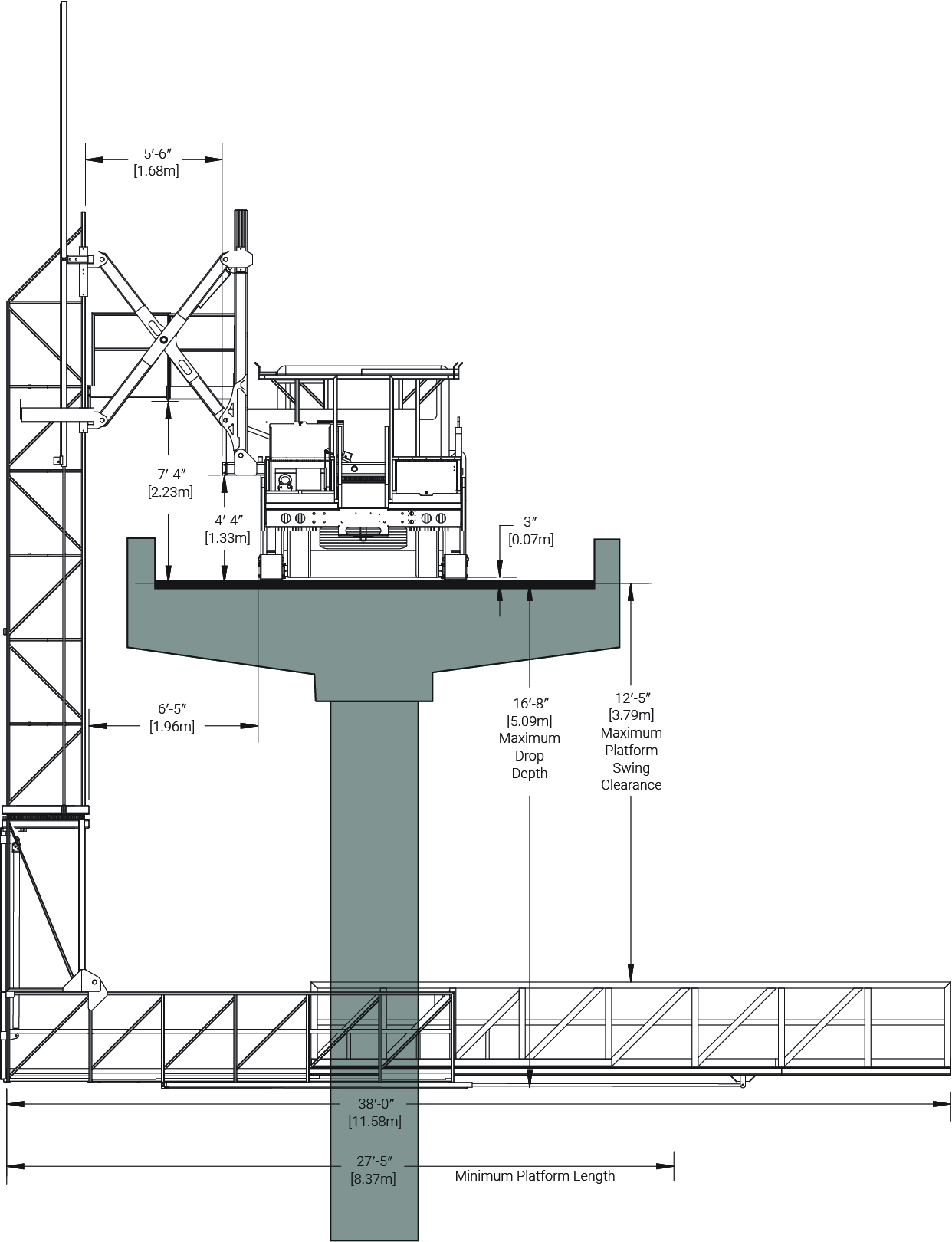 | Maximum Lowering Depth | 16ft-8in | 5.09m |